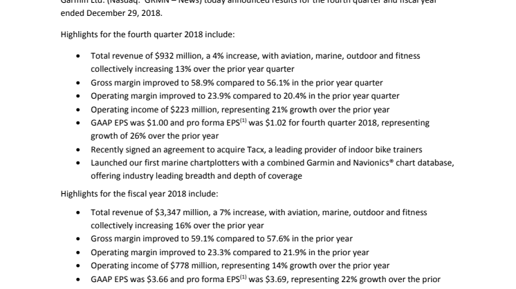 • Garmin erzielt 2018 erneut ein starkes Wachstumsjahr