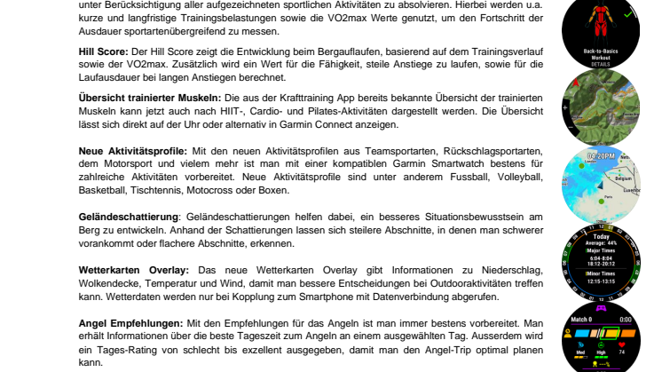 Neue Aktivitätsprofile: Mit den neuen Aktivitätsprofilen aus Teamsportarten, Rückschlagsportarten, dem Motorsport und vielem mehr ist man mit einer kompatiblen Garmin Smartwatch bestens für zahlreiche Aktivitäten vorbereitet. Neue Aktivitätsprofile sind unter anderem Fussball, Volleyball, Basketball, Tischtennis, Motocross oder Boxen.