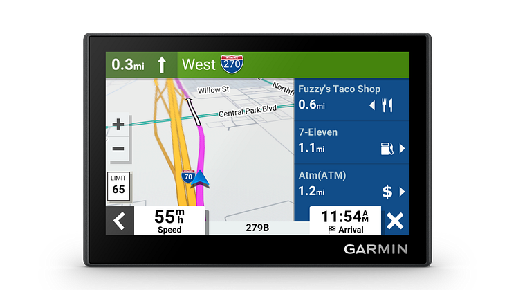 In Verbindung mit der Garmin Drive App auf dem gekoppelten Smartphone erhalten Fahrerinnen und Fahrer Verkehrsinfos, Wetterdaten und Tankstellenpreise in Echtzeit. Fahrerwarnungen geben Aufschluss über potenzielle Gefahren im vorausliegenden Streckabschnitt mit Hinweisen auf Schulzonen, Wildwechselbereiche, Änderungen der Geschwindigkeitsbegrenzung, scharfe Kurven und mehr.