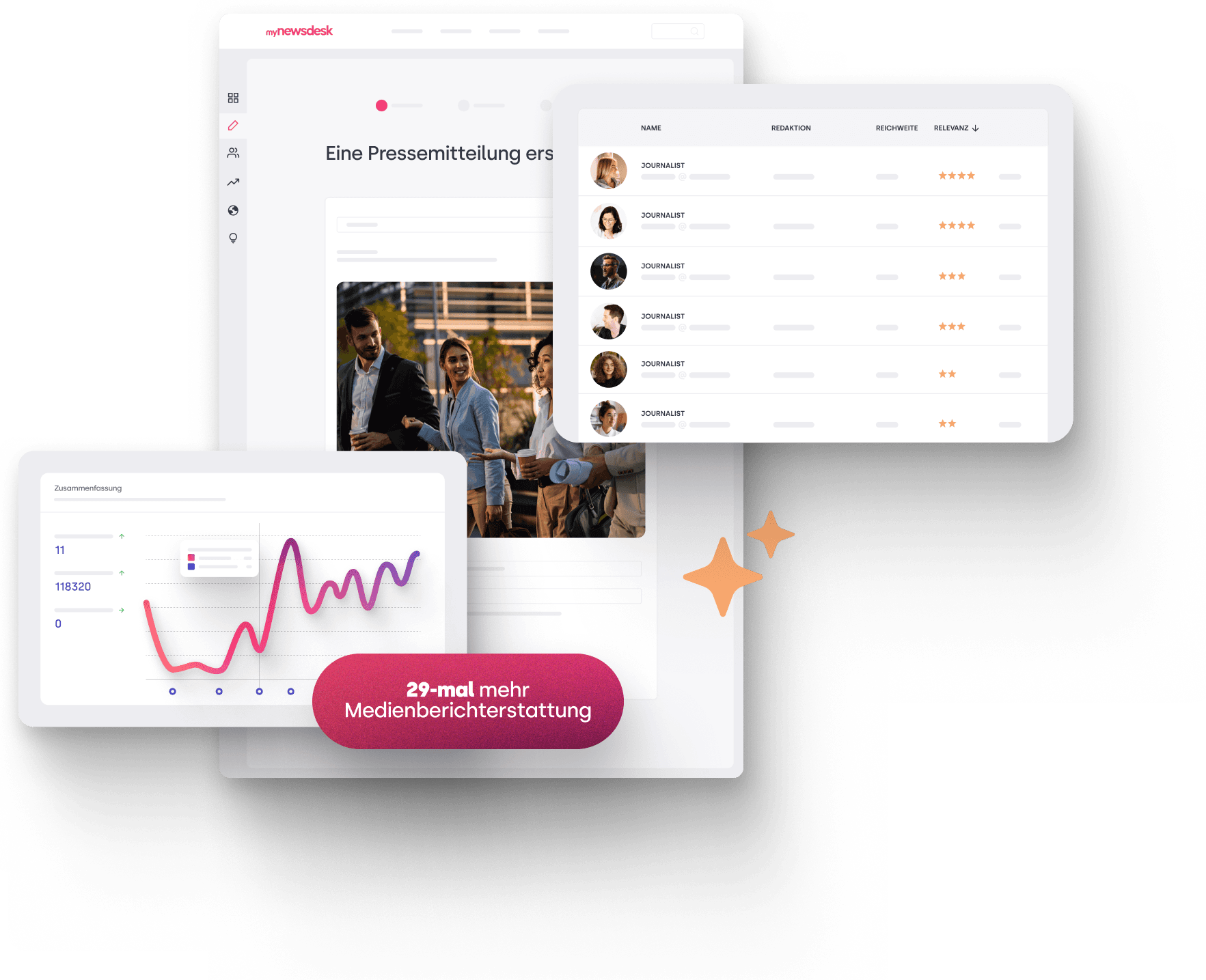 Journalist:innen erhalten täglich unzählige Anfragen. Mit relevanten Themen und gezielter Ansprache heben Sie sich ab und schaffen Vertrauen. Mynewsdesk hilft, die richtigen Kontakte zu finden und sie mit passendem Content zu erreichen. Gleichzeitig sehen Sie, wer sich für Ihre Inhalte interessiert und welche Themen besonders gut ankommen – so können Sie Ihre Kommunikation gezielt optimieren.