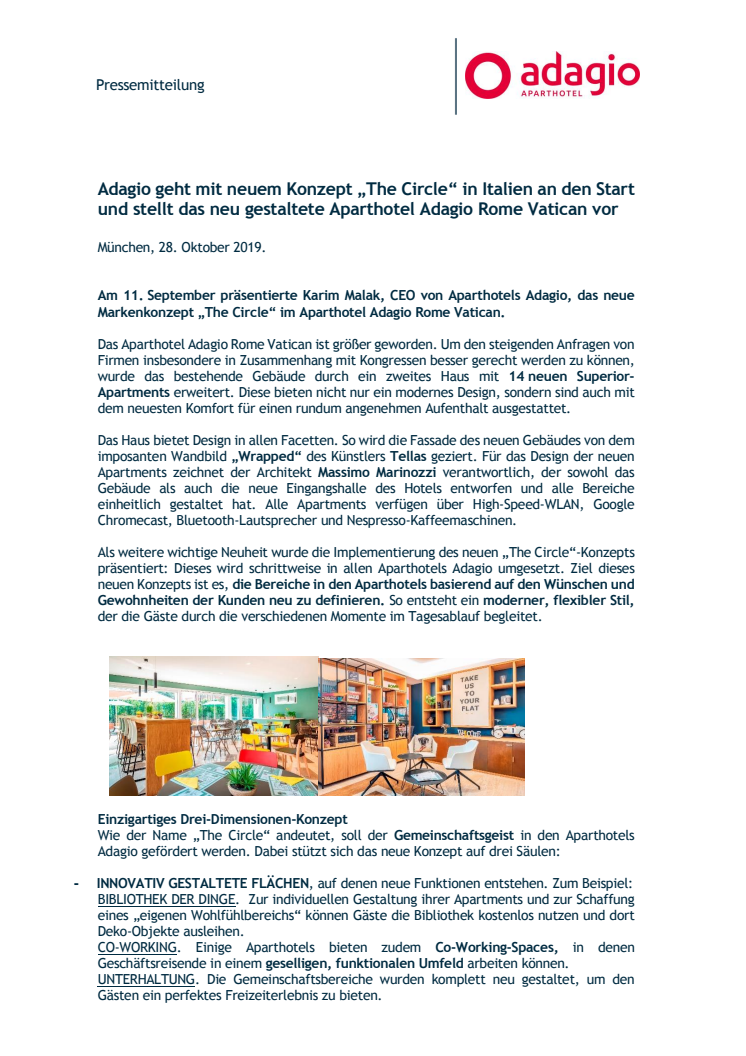 Adagio geht mit neuem Konzept „The Circle“ in Italien an den Start und stellt das neu gestaltete Aparthotel Adagio Rome Vatican vor