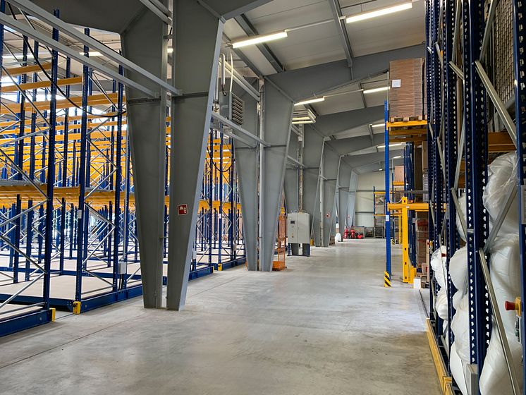 Das neue Verschieberegal (links) in der aeris Zweigniederlassung in Horgau verdoppelt die Lagerkapazitäten des Büromöbelspezialisten (Foto: aeris GmbH)