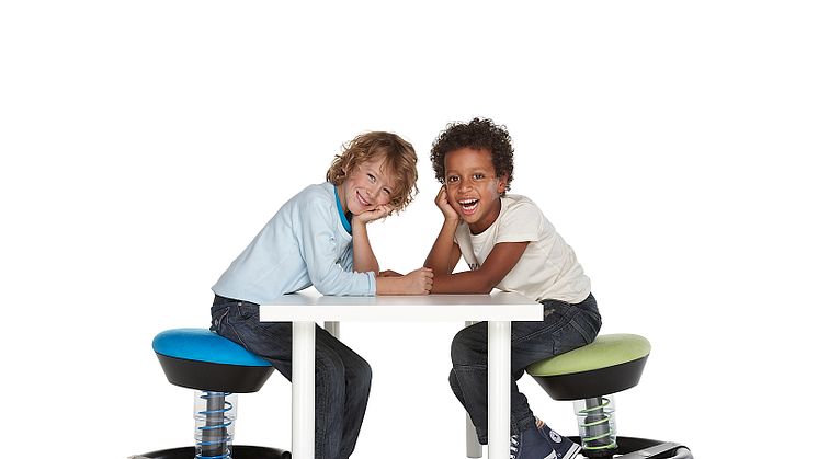 Mit dem Aktiv-Kinder-Drehstuhl von aeris bleiben Schüler auch am Schreibtisch in Bewegung und steigern so ihre Konzentrations- und Leistungsfähigkeit.