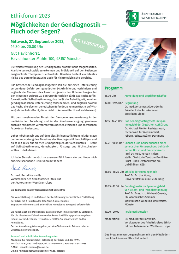 Ethikforum der ÄKWL: Möglichkeiten der Gendiagnostik — Fluch oder Segen?