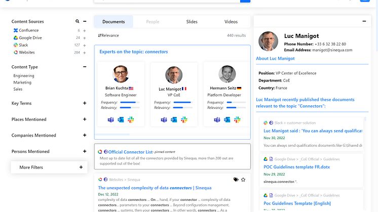 Die Sinequa Search Cloud kombiniert Neural Search mit generativen KI-Funktionen in einer neuen, dialogorientierten Benutzeroberfläche. Mit Hunderten von vorgefertigten Konnektoren zu führenden ERP-, CAD- und PLM-Anwendungen, einschließlich PTC Windchill, ermöglicht Sinequa Nutzerinnen und Nutzern, größtmöglichen Wert aus ihren Daten zu schöpfen. Weltweit führende Unternehmen der Fertigungsindustrie wie Airbus, Alstom, NASA, Siemens, Volkswagen und andere aus den Bereichen Luft- und Raumfahrt, Automobilbau, Industrietechnik, Technologie und anderen Branchen arbeiten bereits mit Sinequa, um alle Informationen für Beschäftigte und Kunden schneller und effizienter auffindbar und verwertbar zu machen.