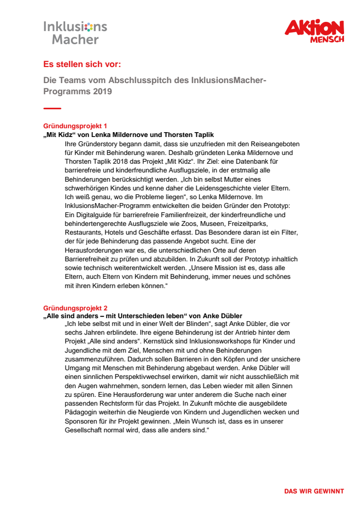 Die Teams vom Abschlusspitch des InklusionsMacher-Programms 2019