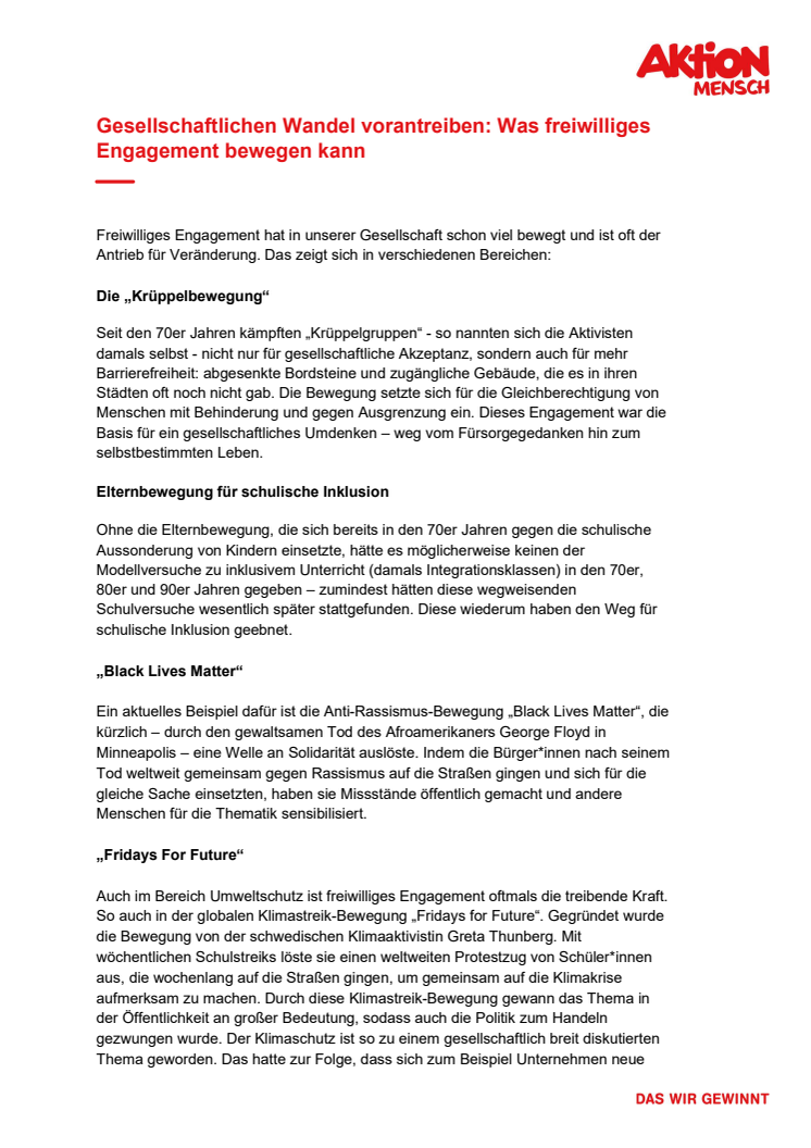 Freiwilliges Engagement - Veränderung