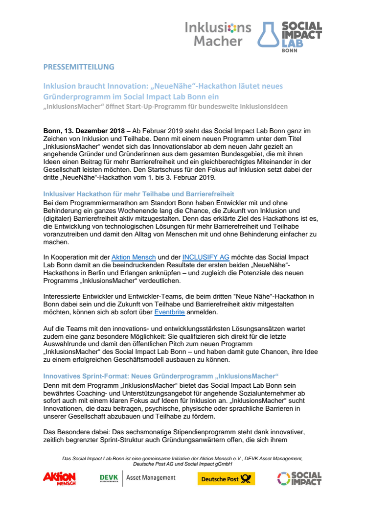 Inklusion braucht Innovation: „NeueNähe“-Hackathon läutet neues Gründerprogramm im Social Impact Lab Bonn ein