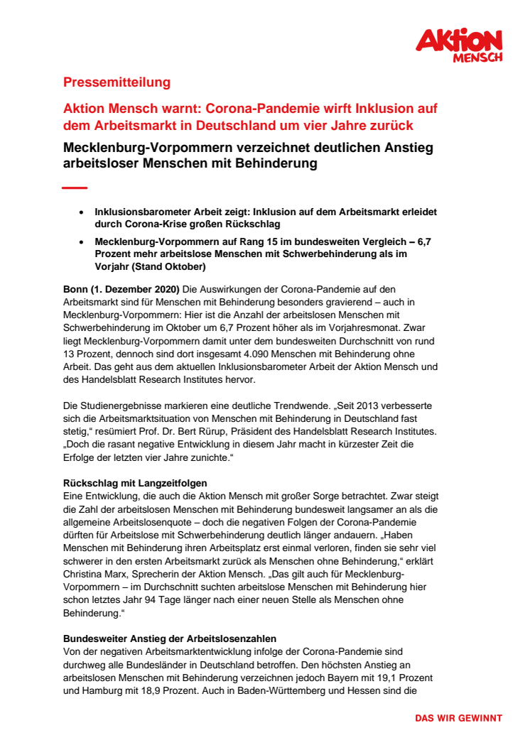 Inklusionsbarometer Arbeit / Mecklenburg-Vorpommern
