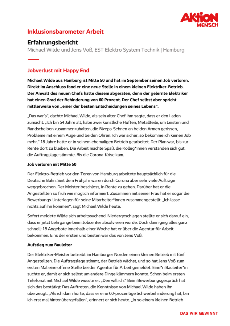 Inklusionsbarometer / Erfahrungsbericht Hamburg