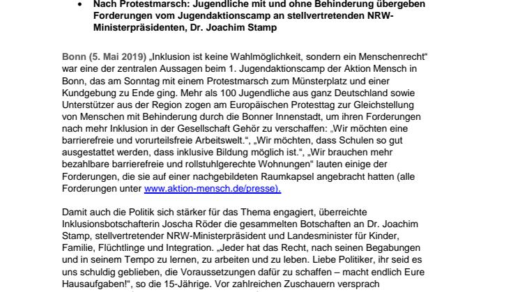 • „Inklusion ist keine Wahlmöglichkeit, sondern ein Menschenrecht“ – Teilnehmer vom Jugendaktionscamp Bonn fordern mehr gelebte Inklusion
