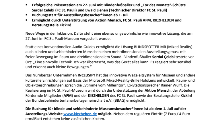 • FC St. Pauli-Museum setzt Hightech-Brille für Blinde ein: Weltweit erster Einsatz neuer Inklusions-Technologie