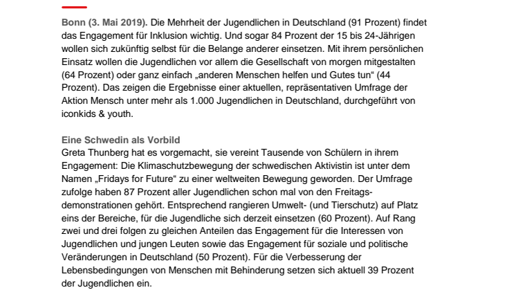 • Aktion Mensch-Umfrage zeigt: Jugendlichen liegt Engagement für Inklusion am Herzen