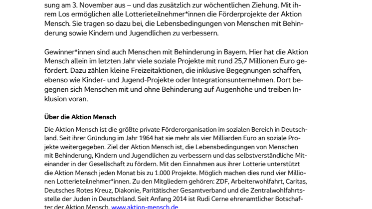 • Oberbayern: Glückspilz gewinnt 100.000 Euro bei der Herbstsonderverlosung der Aktion Mensch