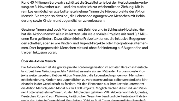 • Landkreis Rendsburg: Glückspilz gewinnt 100.000 Euro bei der Herbstsonderverlosung der Aktion Mensch