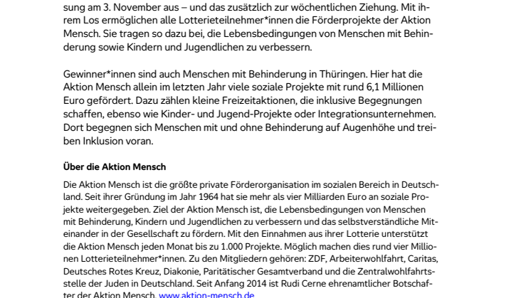 • Nürnberg: Glückspilz gewinnt 1 Million Euro bei der Herbstsonderverlosung der Aktion Mensch
