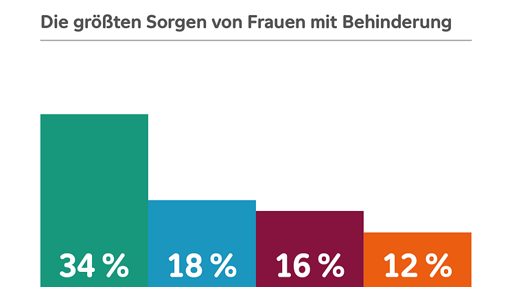 - Die repräsentative Online-Befragung zeigt auch: Neben der Angst vor finanziellen Problemen beschäftigt 18 Prozent der Frauen mit Behinderung vor allem die Sorge bezüglich eines nicht funktionierenden Gesundheitssystems. 16 Prozent geben als dominierende Sorge die Energie- und Klimakrise sowie 12 Prozent eine psychische oder seelische Belastung aufgrund der aktuellen Weltlage an.