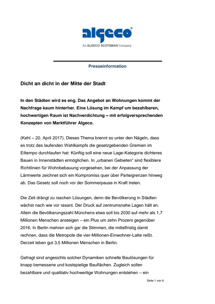 In den Städten wird es eng. Das Angebot an Wohnungen kommt der Nachfrage kaum hinterher. Eine Lösung im Kampf um bezahlbaren, hochwertigen Raum ist Nachverdichtung – mit erfolgversprechenden Konzepten von Marktführer Algeco.