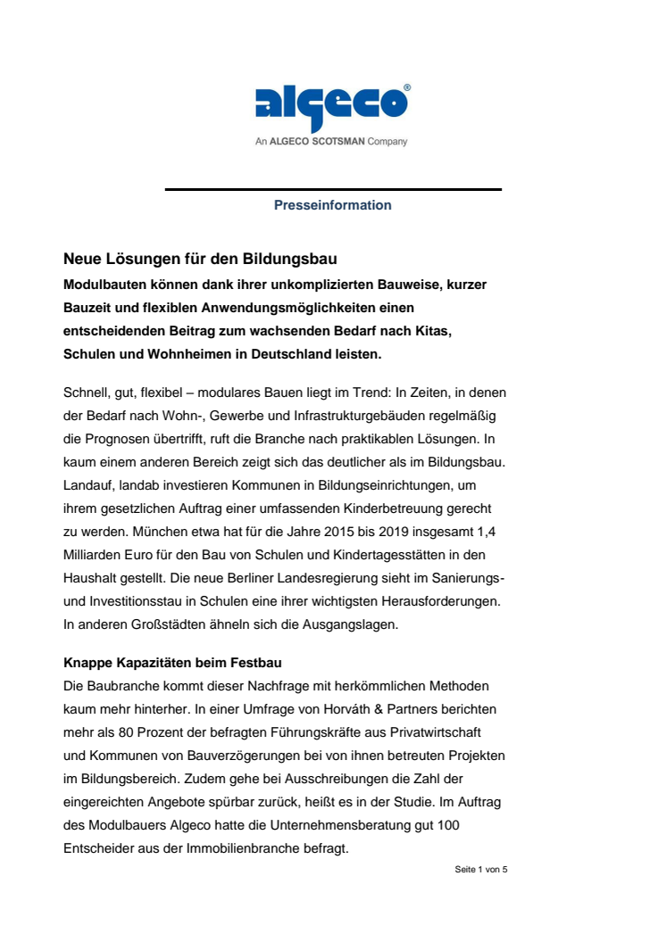Modulbauten können dank ihrer unkomplizierten Bauweise, kurzer Bauzeit und flexiblen Anwendungsmöglichkeiten einen entscheidenden Beitrag zum wachsenden Bedarf nach Kitas, Schulen und Wohnheimen in Deutschland leisten.