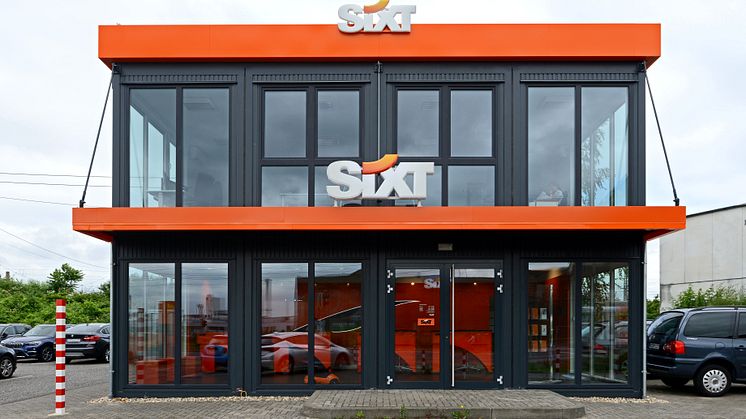 So errichtete Modulbauspezialist Algeco im Auftrag der Sixt Autovermietung ein modernes Servicezentrum. Das zweistöckige Gebäude mit einer Gesamtfläche von mehr als 208 Quadratmetern war nach nur rund vier Wochen Bauzeit bezugsfertig. Architekt Thomas Rosiny aus Bergisch Gladbach plante den Shop im modernen Bauhausstil: Einladend, hell und elegant präsentiert sich das gradlinige Gebäude mit leicht geneigtem Pultdach und einer lichten Raumhöhe von 2,75 Metern. Große Fensterflächen umschließen die gesamte Front und reichen bis zu den Seiten. Auf Besucher und Passanten wirkt diese Offenheit sehr großzügig und einladend. Die puristische Außenfassade bildet eine perfekte Kulisse für das Corporate Design. Im ansprechenden Interieur mit Klimaanlage und modernen Kommunikationstechnologien halten sich die Kunden gerne auf.