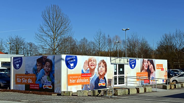 Steht ein Umbau eines bestehenden Gebäudes an, kann dies mehrere Wochen oder Monate dauern. Auch in dieser Zeit brauchen die Kunden eine Einkaufsmöglichkeit. Eine gute Lösung sind Interimsshops, wie das Beispiel dm zeigt. Jedes Jahr baut die Drogeriemarktkette deutschlandweit zwischen 160 und 170 Märkte um. Damit die Kunden während der Renovierungsarbeiten weiterhin an ihrem gewohnten Point of Sale einkaufen können, entstand auf dem Kundenparkplatz einer Filiale in Baden-Baden ein Interimsshop von Algeco, ausgestattet mit dem speziellen Beleuchtungskonzept von dm sowie typischem dm-Bodenbelag, Wandpaneelen und Terminals, sodass auch die temporäre Filiale im Corporate Design der Drogeriemarktkette erstrahlt. Eine auffällig gestaltete Außenhaut aus widerstandsfähiger Plane umhüllt das Gebäude und zieht alle Blicke auf sich. Um alle weiteren Leistungen rund um das Gebäude wie Fenster, Türen, sanitäre Anlagen und Einbauküche hat sich Algeco im Rahmen des 360° Service gekümmert. Nach nur einer Woche Bauzeit konnte der neue Shop seiner Bestimmung übergeben werden.
