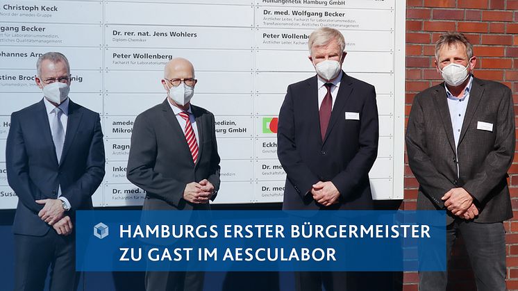 Bürgermeister Tschentscher sagte: „Die Labormedizin ist eine wichtige Voraussetzung für eine erfolgreiche Pandemiebekämpfung. Allein die Hamburger Labore führen 80.000 bis 100.000 PCR-Tests pro Woche durch, um Corona-Infektionen mit hoher Zuverlässigkeit nachzuweisen und Schnelltestergebnisse zu kontrollieren. Wie bei COVID-19 hat die Labormedizin auch bei zahlreichen anderen Erkrankungen eine zentrale Aufgabe in der Diagnostik sowie in der Kontrolle der Therapie und des Krankheitsverlaufs. Das aescuLabor hat einen Schwerpunkt in der Diagnostik seltener Erkrankungen und trägt mit seiner Arbeit zur guten medizinischen Versorgung in Hamburg bei.“.