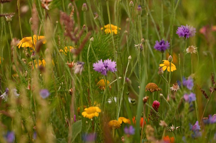Zwischen Mai und Ende Oktober blühen auf der Fläche etwa 75 verschiedene Arten. Sie bieten eine Nahrungsgrundlage und Lebensraum für Wildbienen, Schmetterlinge, Käfer und Schnecken, Schwebfliegen, Vögel und Niederwild. Nicht nur die klassischen, als Insektenweide bekannten Wildblumen wachsen dort. Im Saatgut sind auch verschiedene Gräser enthalten, die ebenfalls eine große Bedeutung für die Artenvielfalt haben.