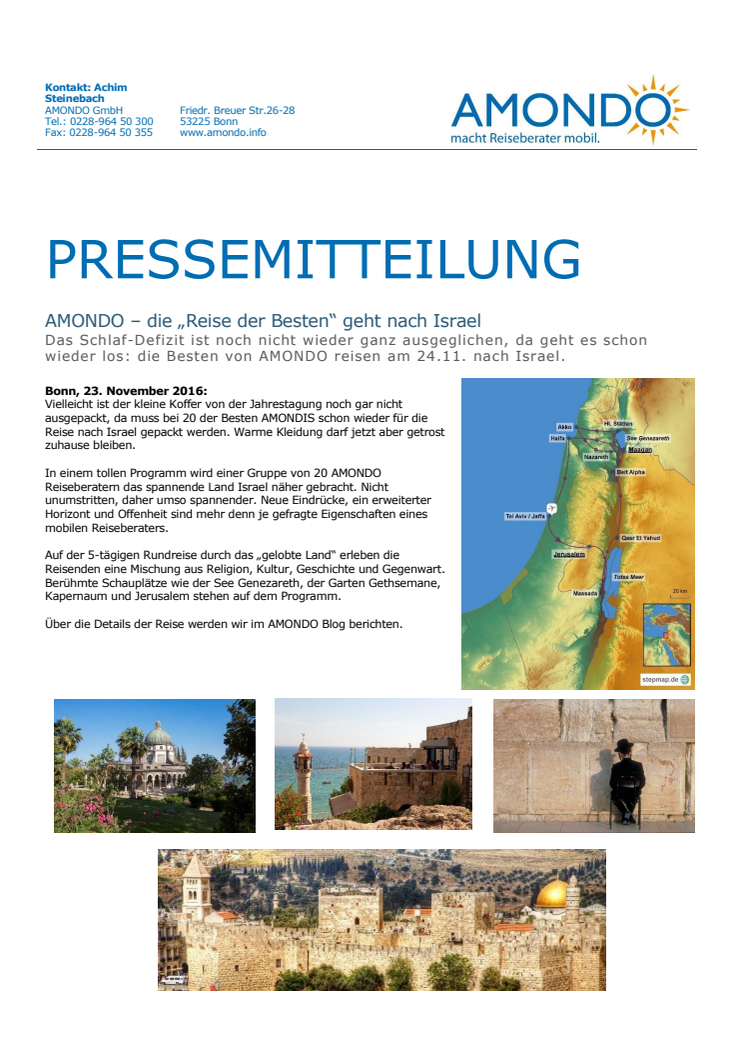 AMONDO – die „Reise der Besten“ geht nach Israel