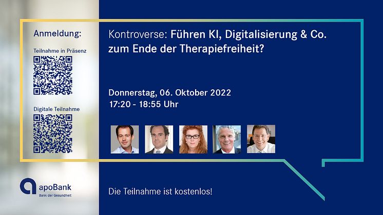 Um dieses kontroverse Thema geht es in dem apoTalk-Spezial der Deutschen Apotheker- und Ärztebank (apoBank) am 6. Oktober von 17:20 bis 18:55 Uhr. Die Expertenrunde dazu trifft sich im Rahmen des Europäischen Gesundheitskongresses im Hilton Munich Park, Am Tucherpark 7 in München.