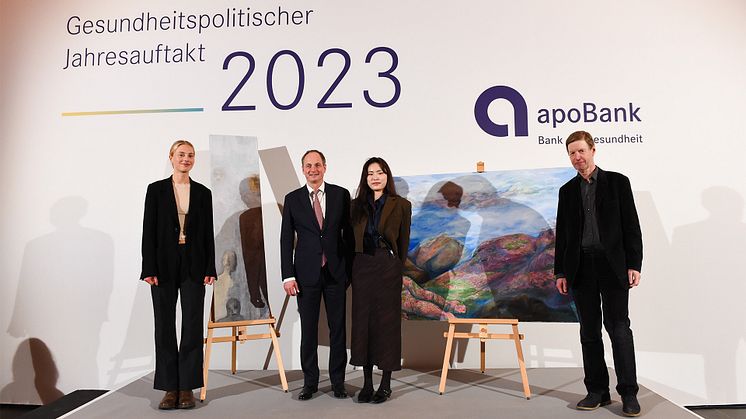 Der Gesundheitspolitische Jahresauftakt der Deutschen Apotheker- und Ärztebank (apoBank) ist inzwischen eng mit der Förderung der jungen Düsseldorfer Kunst verbunden. So hatten auch am gestrigen Montagabend über 400 geladene Gäste wieder die Gelegenheit, Werke von Studierenden der Düsseldorfer Kunstakademie auf der Piazza der Kunstsammlung K21 im Düsseldorfer Ständehaus zu besichtigen und ihr Lieblingswerk zu wählen.