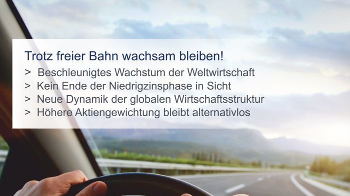 Angesichts dieses dynamischen makroökonomischen Umfelds steht den Anlegern nach Ansicht der apoBank ein weiteres Aktienmarkt-freundliches Jahr in Aussicht. „Berücksichtigt man zusätzlich, dass im anhaltenden Niedrigzinsumfeld Anleiheinvestoren auch weiterhin nur Renditen unterhalb der Inflationsrate erzielen können, ist selbst für sicherheitsorientierte Anleger eine höhere Aktiengewichtung alternativlos“, sagt Kühn.