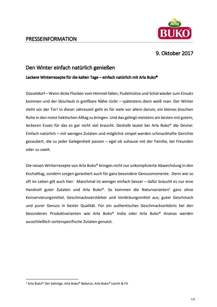 Den Winter einfach natürlich genießen: Leckere Winterrezepte für die kalten Tage – einfach natürlich mit Arla Buko®