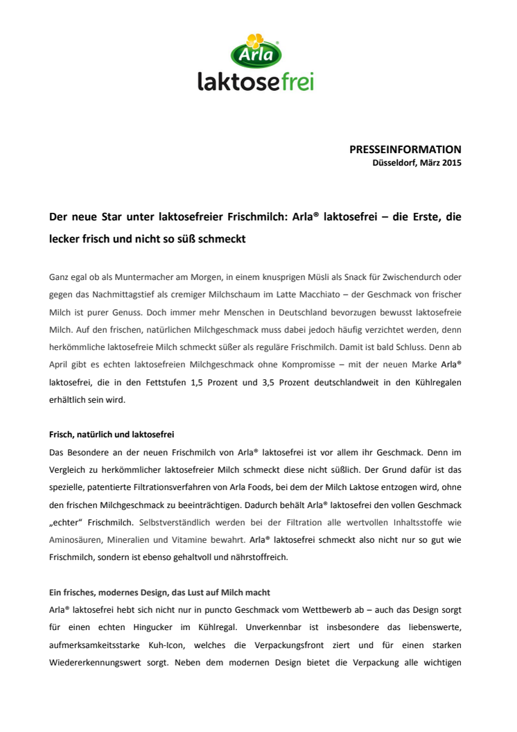 Pressemitteilung Arla laktosefrei