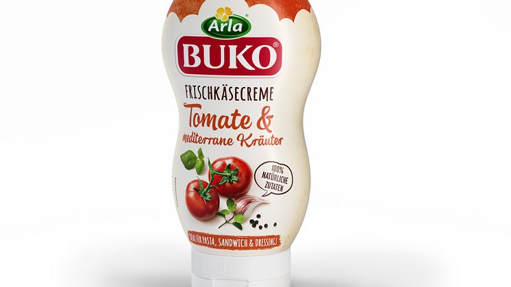 Abwechslung ist Trumpf. Deshalb bringt die Arla Buko® Frischkäsecreme mit gleich drei Geschmackssorten Bewegung ins Frischkäsesegment: Tomate & mediterrane Kräuter, Karamellisierte Zwiebel sowie Pur. Getreu dem Arla Buko® Motto „Manchmal ist weniger einfach besser" – ganz ohne Verdickungsmittel, ohne Geschmacksverstärker und ohne Konservierungsstoffe – punkten die neuen Flaschen mit wenigen, natürlichen Zutaten bei bewussten Verbrauchern.