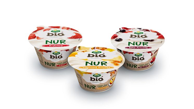 Einzigartig im Markt: Mit dem neuen Fruchtjoghurt der Marke Arla Bio, der nur aus Joghurt und Früchten besteht, bringt Arla Foods eine Innovation in Deutschlands Supermärkte. Damit kommt das Unternehmen dem zunehmenden Verbraucherwunsch nach möglichst natürlichen Produkten mit hochwertigen Zutaten nach, die komplett frei von Aromen und Zusatzstoffen wie etwa Verdickungsmitteln sind. Zudem verzichtet Arla Foods ganz im Sinne vieler Verbraucher bei dem Fruchtjoghurt komplett auf den Zusatz von Zucker. Das Produkt enthält ausschließlich von Natur aus Zucker, denn die Süße des Joghurts stammt nur aus den Zutaten Bio Früchte (Fruchtzucker) und Bio Joghurt (Milchzucker). Dabei sorgt der sehr hohe Fruchtanteil von 25 Prozent pro Becher für die richtige Süße.
