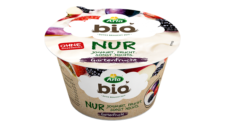 Natürlicher Genuss: Arla Bio mischt in seiner neuen Fruchtjoghurtsorte NUR Gartenfrüchte und Naturjoghurt