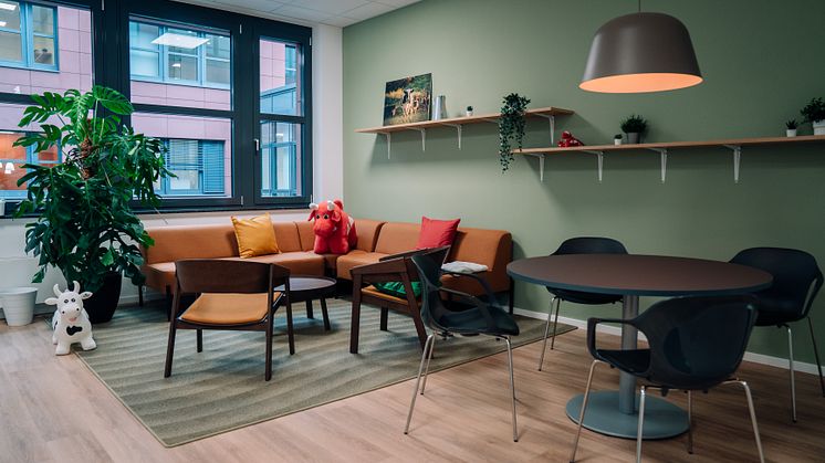 Mit der Strategie „Power of the Mix“ verfolgt Arla ein hybrides Arbeitsmodell, das Flexibilität für die Mitarbeitenden und eine effiziente Zusammenarbeit in Einklang bringt. So können die Mitarbeitenden bis zu 40 Prozent ihrer Arbeitszeit aus dem Home Office leisten und an ihren Bürotagen von den Vorteilen des persönlichen Austauschs und der hochmodernen Infrastruktur der neuen Büroflächen profitieren. Das Konzept der „Activity-Based Working Zones“ teilt das Büro in verschiedene Zonen, die jeweils ideale Bedingungen für unterschiedliche Anforderungen des Arbeitsalltags und Aufgaben bieten. Dabei reichen die Zonen von klassischen Einzelarbeitsplätzen in offenen Bereichen, über Team-Zonen für Gruppen- und Projektarbeit bis zu „Break-Zonen“ für informelle Treffen oder Pausen. Hinzu kommt ein neuer großzügiger Konferenzbereich mit modernster Video-Technologie und ein vergrößertes Betriebsrestaurant sowie ein „Game Room“ mit Tischtennisplatte und Tischkicker für eine sportliche Pause mit Kolleg:innen.