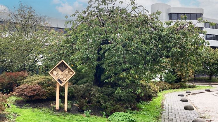 To this end, a biodiversity study was first carried out by an ecologist, who determined the existing situation of the property and grounds and identified development potential. On this basis, an office property near Amsterdam was redesigned for different habitat requirements for birds and insects. The measures include the planting of native plants, insect hotels and nesting boxes on the site. On another site in Maastricht, additional habitat will be created in the future, primarily through bird nesting boxes, insect hotels and bat boxes.