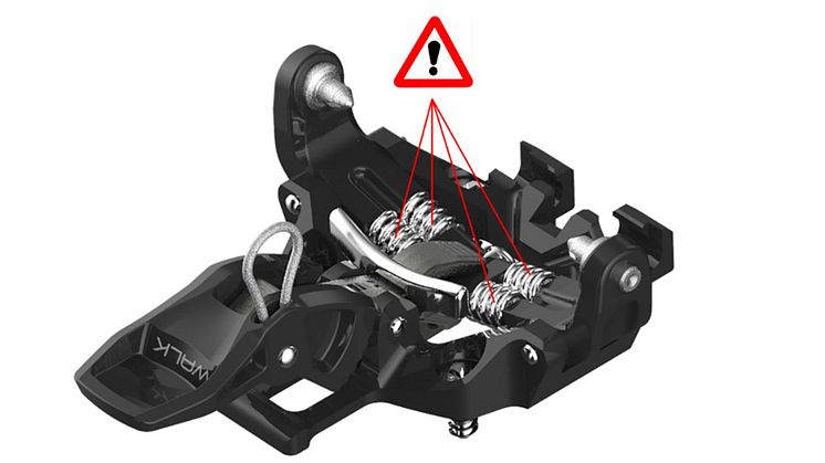 Anlass sind Berichte mehrerer Einzelhändler und unsere eigene technische Überprüfung. Es hat sich gezeigt, dass unter bestimmten Bedingungen die Gefahr eines Bruchs der Federführungsachse am Vorderbacken der Bindung besteht. Ein solches Versagen könnte dazu führen, dass sich der Skischuh vom Ski löst, was dazu führen kann, dass ein Skifahrer die Kontrolle verliert, stürzt oder sich verletzt.