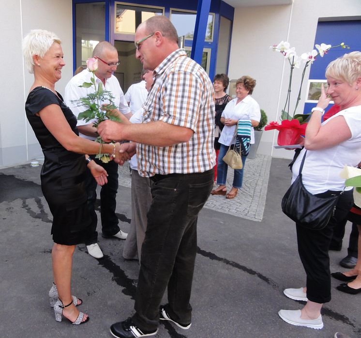 Die Jubilare, Sabine und Knut, werden beglückwünscht