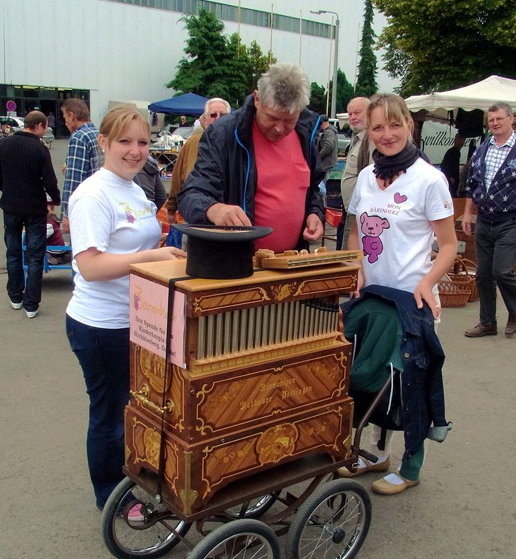 Von Januar bis Juli findet jedes letzte Wochenende des Monats ein Antik- und Trödelmarkt auf dem agra Veranstaltungsgelände statt. Während dieser Zeit waren Bärenherz-Freunde mit dem Leierkasten für das Kinderhospiz unterwegs.