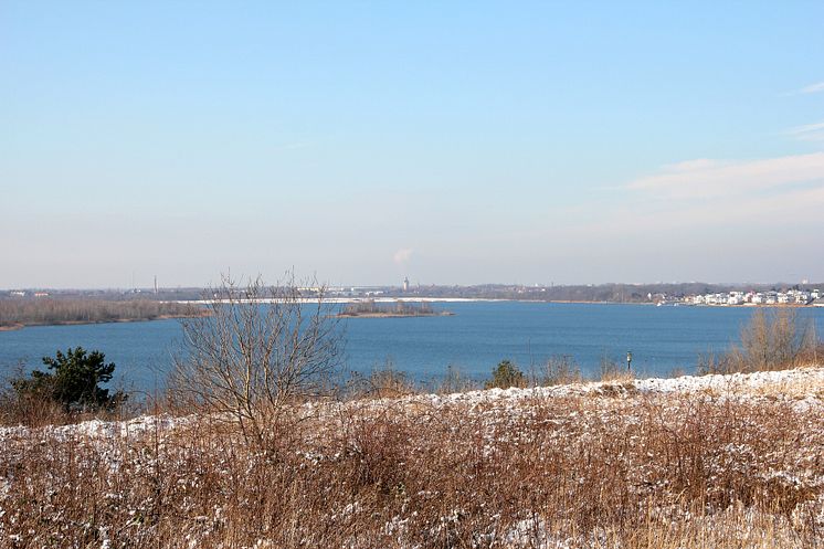 Blick vom Seepark Auenhain auf den Markkleeberger See