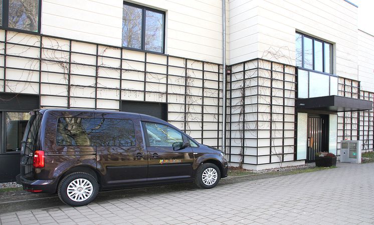 der neue VW Caddy vor dem Kinderhospiz Bärenherz