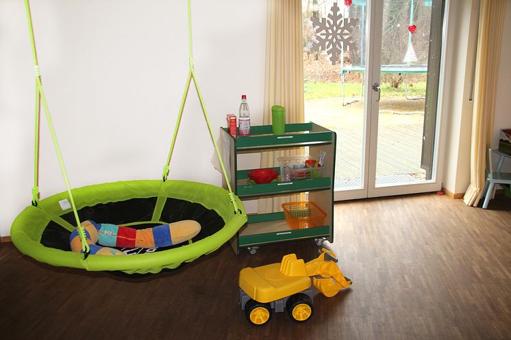Die neue Nestschaukel hängt im großen Aufenthaltsraum.