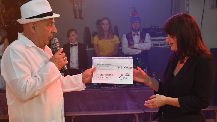 Nach ihrer Benefizveranstaltung am Samstag konnte der Bergisdorfer Carnevals Club (BCC) eine Spendensumme von 1.500 Euro an das Kinderhospiz Bärenherz Leipzig überweisen. Der Betrag, so Vorstandsvorsitzender Reinhold Mücke, setzt sich aus 1.225 Euro Eintrittsgeld und einer Zugabe des Vereins zusammen.
