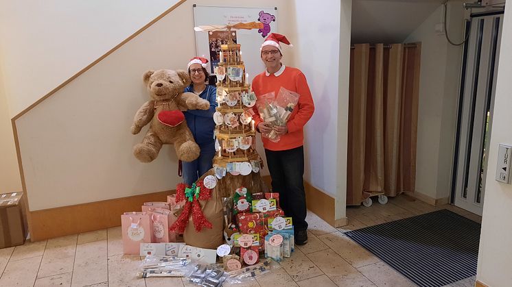 Diese Weihnachtsaktion war ein voller Erfolg, denn jede Kugel wurde bedacht. Am 19. Dezember überreichte Manuel Gottwald, Hausleiter von Sconto SB, viele sorgfältig verpackte Pakete an das Kinderhospiz. Jedes Paket enthielt einen erfüllten Weihnachtswunsch, den jeweilsein Kunden oder eine Kundin des Marktes übernommen hatte.