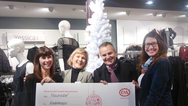 Silke Mai und Angela Enzmann von C&A sowie Steven Reitler und Ulrike Herkner vom Kinderhospiz Bärenherz
