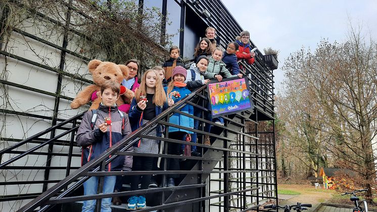 Zehn aufgeschlossene und sehr interessierte Schülerinnen und Schüler haben uns Ende Januar besucht. Im Gepäck ihr selbst gemalter Spendenscheck mit der richtig großen Summe von 1.920,65 Euro. Es ist schon etwas her, dass die Fünftklässler diese stolze Summe gesammelt haben, das aber überaus sportlich und hoch motiviert. Die zehn kamen stellvertretend für insgesamt fünf Parallelklassen zum Kinderhospiz Bärenherz. Alle zusammen sind sie „Großen“. Ihre Schule ist noch im Entstehen, das zukünftige „Gymnasium im Löwitz Quartier“. Derzeit gibt es nur ihren Jahrgang, untergebracht in einem Ausweichquartier. Und dort starteten sie im September 2023 mit einem Spendenlauf ins neue Schuljahr. Man war sich schnell einig, dass unser Kinderhospiz Bärenherz die Hälfte der Spendengelder bekommen sollte. Nicht weniger wichtig war aber, den einstündigen Lauf durchzuhalten. Und das haben alle Schülerinnen und Schüler geschafft, wie uns die zehn hier vor Ort berichteten.