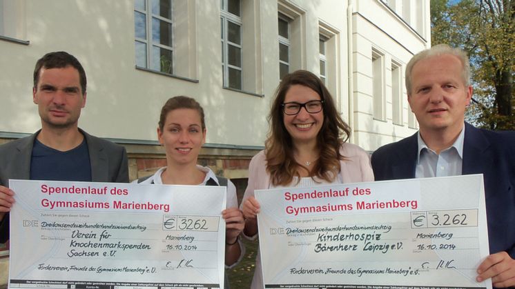 Das Gymnasium Marienberg hat einen Sponsorenlauf veranstaltet - zum allerersten Mal. Und die Schüler, Lehrer und Sponsoren haben sogleich eine ganze Menge Geld damit gesammelt. Das Kinderhospiz Bärenherz und der Verein für Knochenmarkspenden Sachsen e.V. zählen zu den glücklichen Begünstigten. Beeindruckende 3.262 Euro durften wir im Erzgebirge abholen.