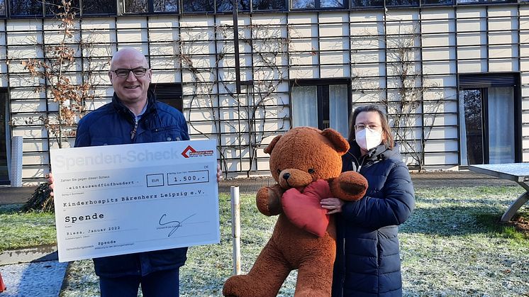 Weihnachten etwas Gutes tun - das hatte auch die Handelshof Riesa GmbH im Sinn, als sie sich entschieden, das Kinderhospiz Bärenherz zu unterstützen. Mit einem großen Scheck bepackt kam Geschäftsführer Frank Berthold aus Riesa nach Markkleeberg und übergab symbolisch sagenhafte 1.500 Euro an Kerstin Stadler vom Förderverein.